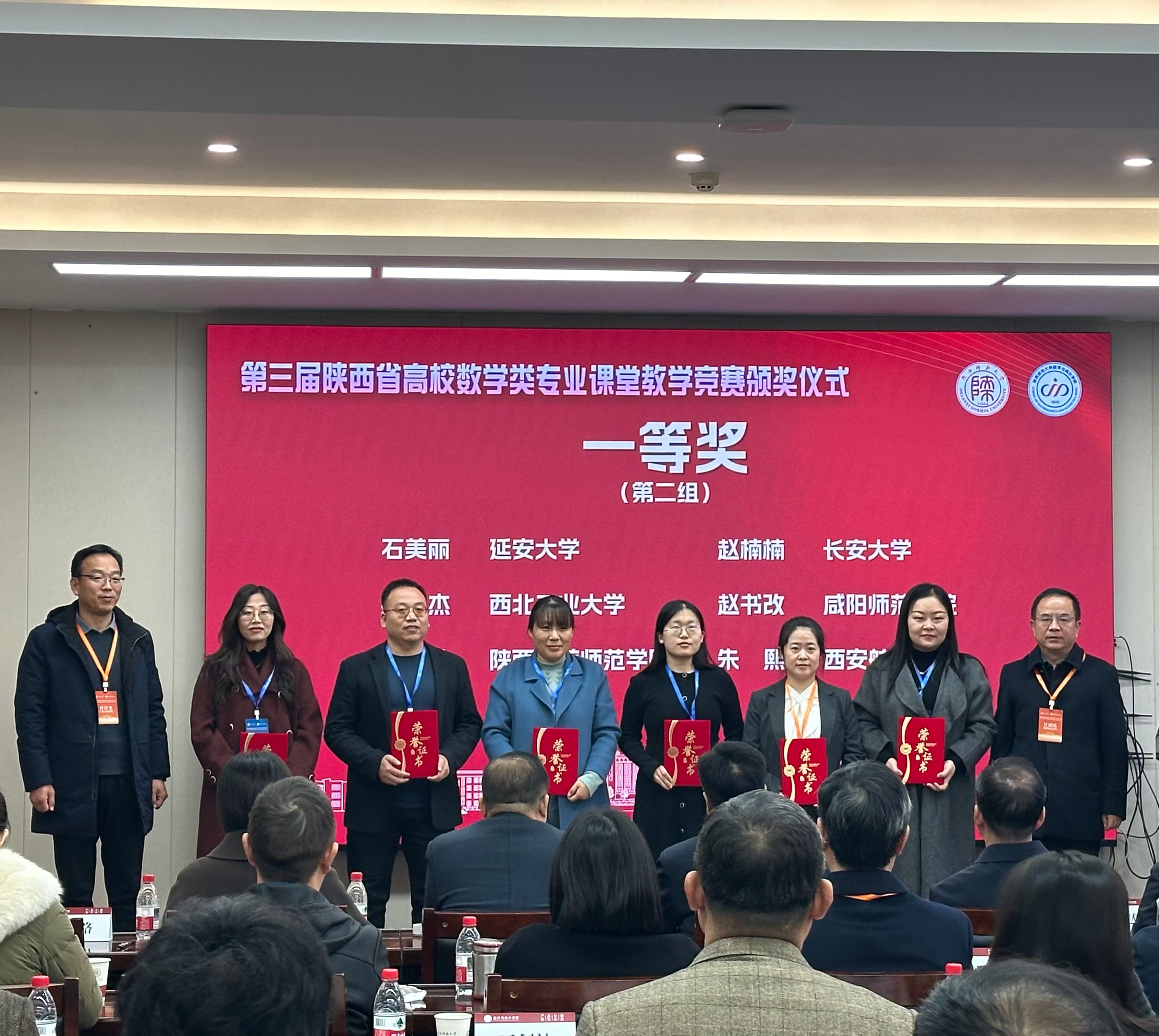 2025年12月7日,第三届陕西省高校数学类专业课堂教学竞赛颁奖仪式在陕西师范大学举行,我院教师朱熙讲授的《高等数学》课程、任炯讲授的《概率论与数理统计》课程分别斩获一等奖和二等奖。