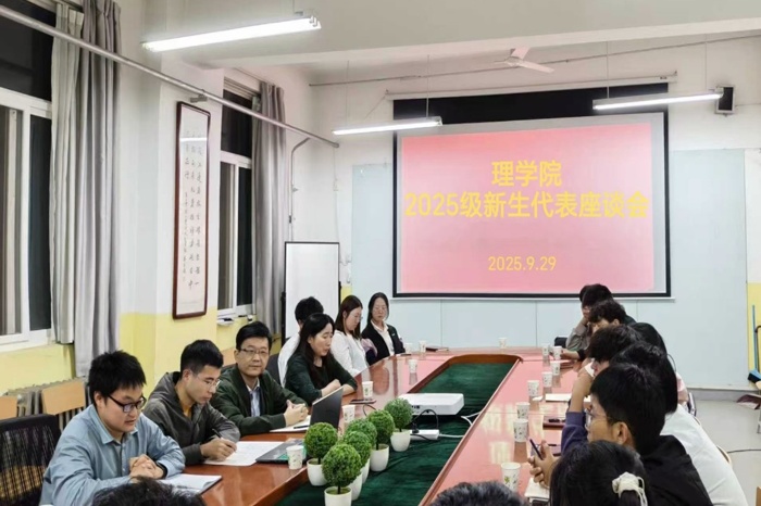 为了解新生近期动态,帮助2025级新生更快适应大学生活、明确成长方向,9月29日,理学院在教学南楼428会议室召开2025级新生代表座谈会。党总支书记胡红亮,副院长韩慧蓉,辅导员张岩、王向阳出席会议,与新生代表面对面交流,倾听心声、答疑解惑。