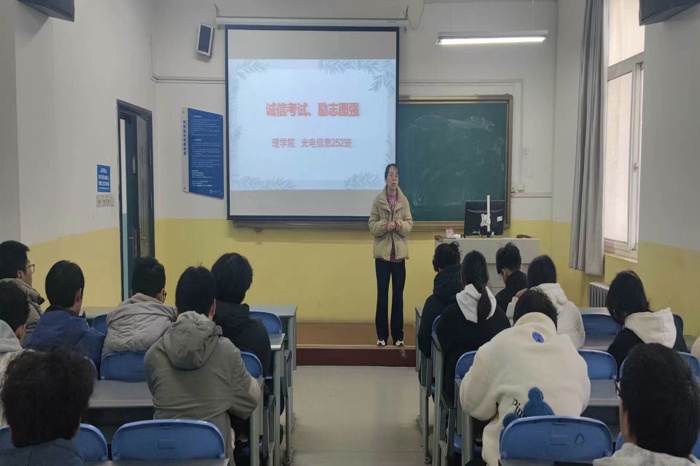 为深入贯彻落实学校学生工作安排,进一步加强考风考纪建设,提升学生思想政治素养,并做好岁末年初的安全稳定工作,理学院各班级于12月召开了“诚信考试,励志图强”主题班会。本次班会紧密围绕思政学习、诚信教育与假期安全三大核心内容,旨在统一思想、凝聚共识,引导理学院学生以昂扬的姿态迎接各项考试与新年的到来。
