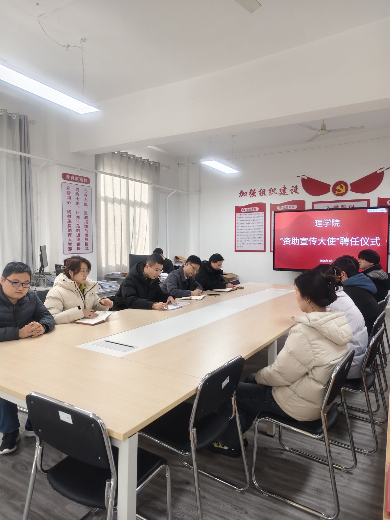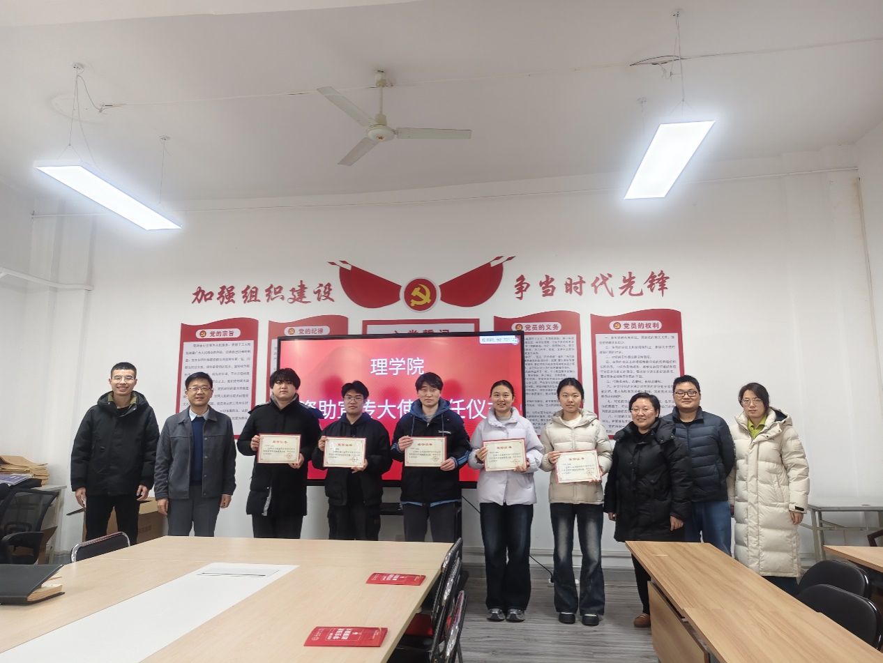 为进一步推动学生资助政策走深走实,让助学温暖直达有需要的学子,1月14日,理学院在南楼433室举办“资助宣传大使”聘任仪式。理学院党总支书记胡红亮、学生工作办公室主任李扬、辅导员张岩、王向阳、曾妍等和学生代表参加。