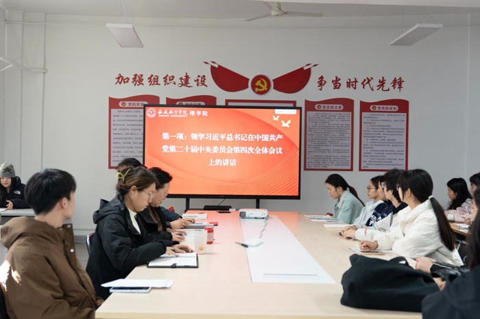为深入学习贯彻党的四中全会精神,引导青年学子深刻把握时代脉搏、勇担历史使命,11月28日理学院学生党支部在莲湖校区教学南楼433会议室成功举办了“贯彻四中全会精神 勇担青年时代使命”主题党日活动暨第四季度专题党课。学生党支部全体党员、预备党员及入党积极分子参加,会议由组织委员王向阳主持。