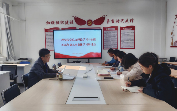 2025年12月11日下午,理学院党总支理论学习中心组在莲湖校区南楼433会议室举行2025年第九次集体学习研讨。本次会议的主题是:学习贯彻习近平总书记关于网络生态治理和党的自我革命的重要讲话重要文章精神;结合学院实际,就党的二十届四中全会通过的《中共中央关于制定国民经济和社会发展第十五个五年规划的建议》中“一体推进教育科技人才发展”开展研讨。会议由党总支书记胡红亮主持。