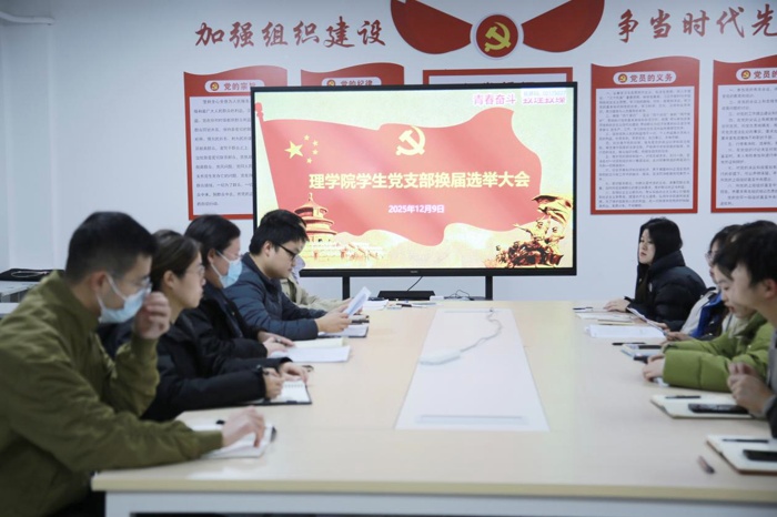2025年12月9日19点,理学院学生党支部在教学南楼433党员活动室召开全体党员大会,圆满完成支部委员会换届选举工作。理学院副院长韩慧蓉同志出席大会,支部全体学生党员参加会议。