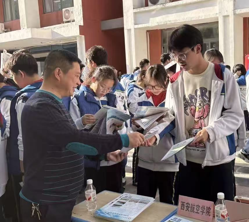 活动期间,我校在各中学设立招生宣传展位,与考生面对面交流,详细介绍我校办学特色、专业设置及就业前景,重点解答了考生关心的志愿填报、专业选择、生涯规划等问题。宣传人员还结合我校在航空航天、机械制造等领域的学科优势以及实习实训基地建设情况,帮助学生更清晰地了解未来发展路径。